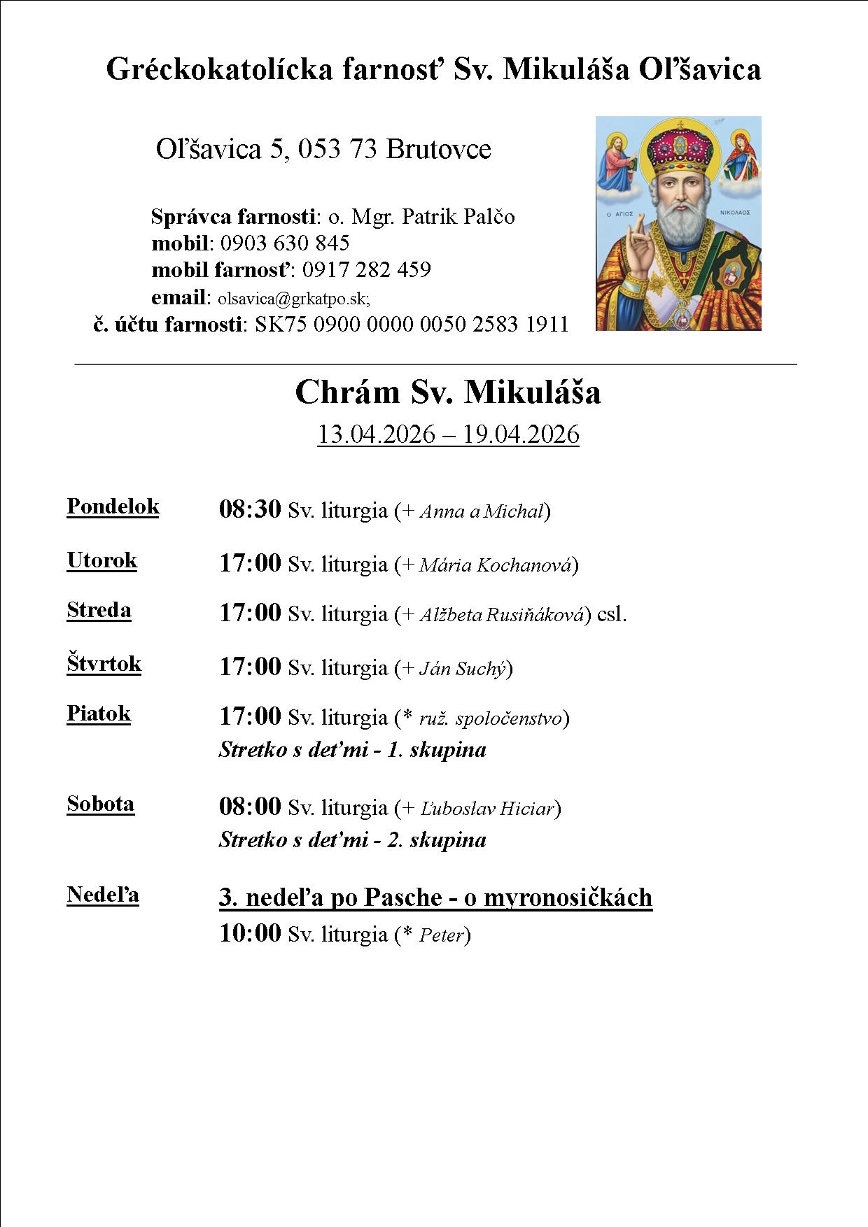 Liturgický program 13.04.2026 – 19.04.2026